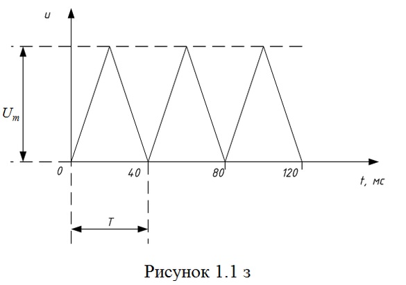 Задача 1.2 Определить показания вольтметров двух типов при измерении напряжения заданной формы (рис. 1.1 з), а так же коэффициенты формы и амплитуды измеряемого напряжения. Оценить относительную и абсолютную погрешность измерения одним из приборов (В/О), класс точности и предел измерения которого указан в варианте задачи. Исходные данные: Типы приборов – Э/М (электромагнитный); В/О (выпрямительный с однополупериодной схемой выпрямления) y=1 Um=450 мВ Uk=650 мВ T=40 мс Рисунок 1.1 з (см. скрин)