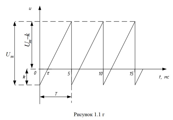 Задача 1.2 Определить показания вольтметров двух типов при измерении напряжения заданной формы (рис. 1.1 г), а так же коэффициенты формы и амплитуды измеряемого напряжения. Оценить относительную и абсолютную погрешность измерения одним из приборов (В/О), класс точности и предел измерения которого указан в варианте задачи. Исходные данные: Типы приборов – Э/М (электромагнитный); В/О (выпрямительный с однополупериодной схемой выпрямления) y=1 Um=150 мВ Uk=150 мВ T=5 мс Рисунок 1.1 г (см. скрин)